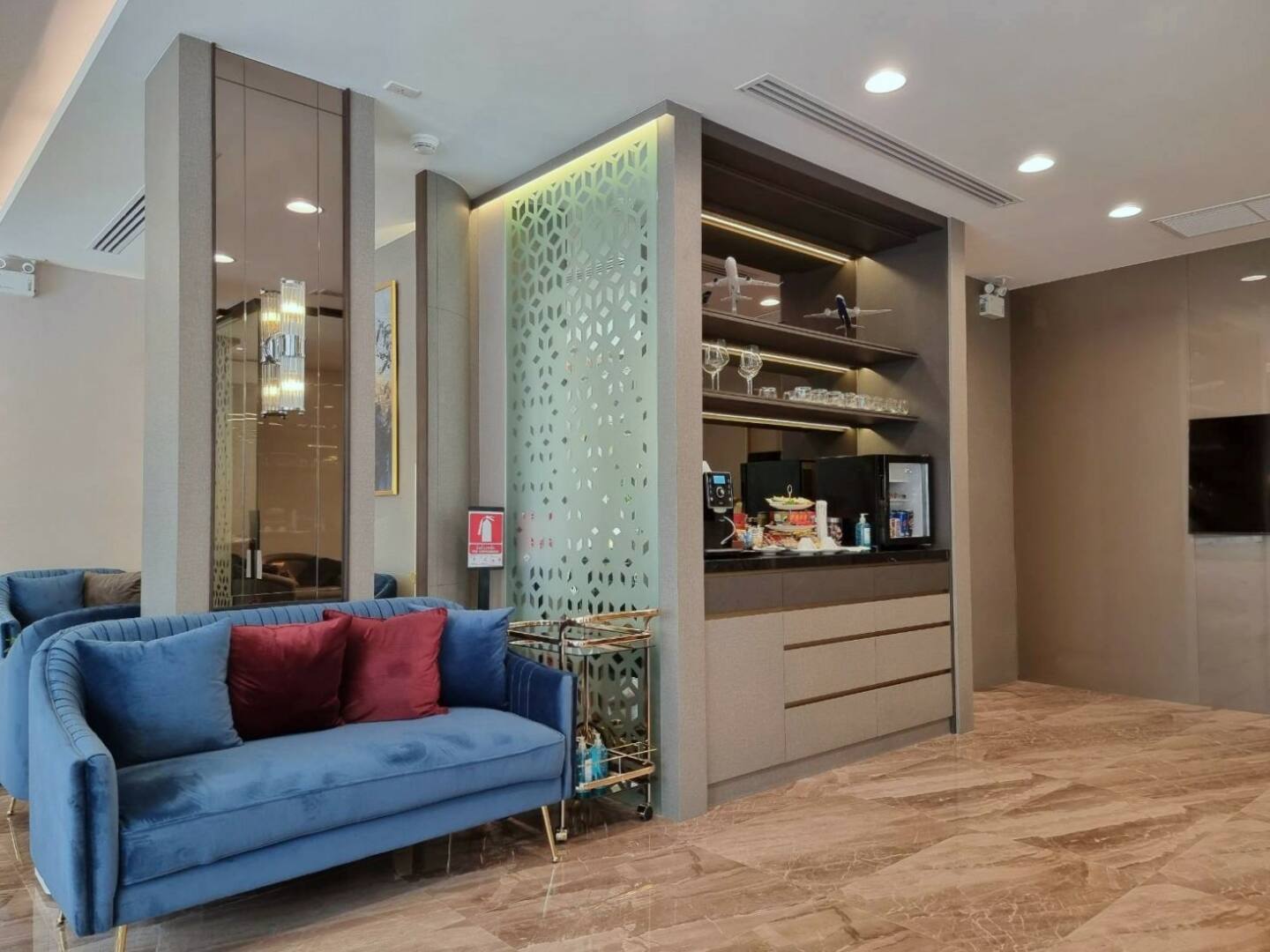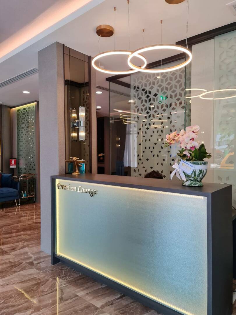ห้องรับรองผู้โดยสารระดับพรีเมียมภายในสนามบินดอนเมือง ที่ออกแบบมาเพื่อมอบประสบการณ์การพักผ่อนก่อนการเดินทางในบรรยากาศที่หรูหรา สะดวกสบาย และสะท้อนมาตรฐานการบริการระดับสากล โดยมีการตกแต่งภายในด้วยวัสดุกระจกดีไซน์พิเศษอย่าง กระจกพิมพ์ลาย Picxelglas ซึ่งช่วยสร้างมิติของลวดลายและพื้นผิวที่โดดเด่น เพิ่มเสน่ห์ให้กับพื้นที่ภายในได้อย่างลงตัว