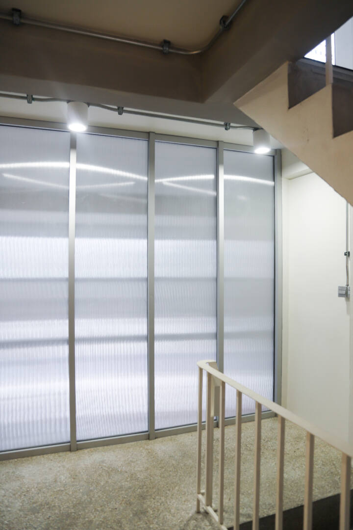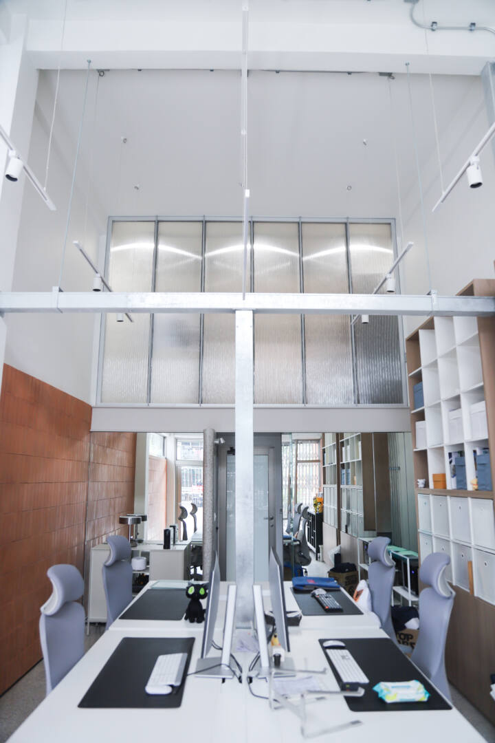 เปลี่ยนพื้นที่อาคารเดิมภายในออฟฟิศของคุณมาร์ช จุฑาวุฒิ ให้ทันสมัย เริ่มด้วยบริเวณชั้นลอย โดยเพิ่มความเป็นส่วนตัวด้วยกระจกลอนลามิเนตที่ให้ความรู้สึกกึ่งทึบกึ่งใส แสงสามารถส่องผ่านได้อย่างมีมิติ แต่ยังคงคอนเซ็ปต์ความเป็นส่วนตัว